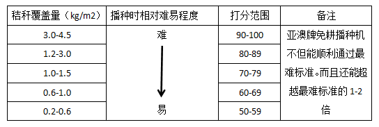 機(jī)具對(duì)不同作業(yè)條件的適應(yīng)程度(玉米秸稈還田覆蓋量表)
