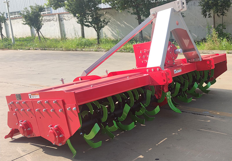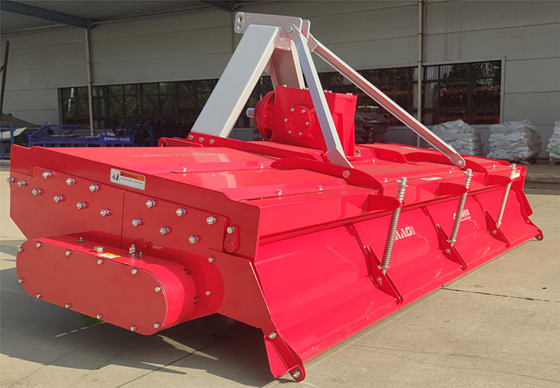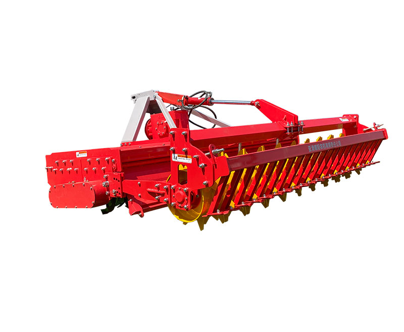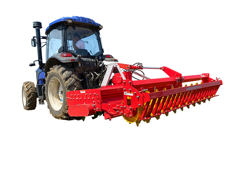 該機具主要用于旋耕整地作業(yè),農(nóng)藝順序為旋耕-旋耕-鎮(zhèn)壓-拖平。專利設計,合理利用刀軸外端二次動力傳輸,帶動后刀軸工作,達到二次粉碎。機械傳動環(huán)節(jié)少,有效節(jié)省了拖拉機的馬力消耗。一遍頂兩遍的作業(yè)模式,大大提高工作效率。前刀軸和后刀軸連續(xù)作業(yè),拖板鎮(zhèn)壓拖平,提高作業(yè)質(zhì)量。