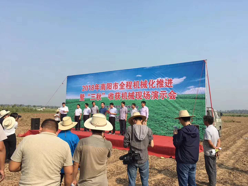碩果累累的八月,滿載著收獲幸福的喜悅。由南陽市農業機械化協會主辦、臥龍區農業機械化管理局承辦的2018年南陽市全程機械化推進暨“三秋”收獲機械現場演示會在南陽市臥龍區潦河鎮吳集村召開。