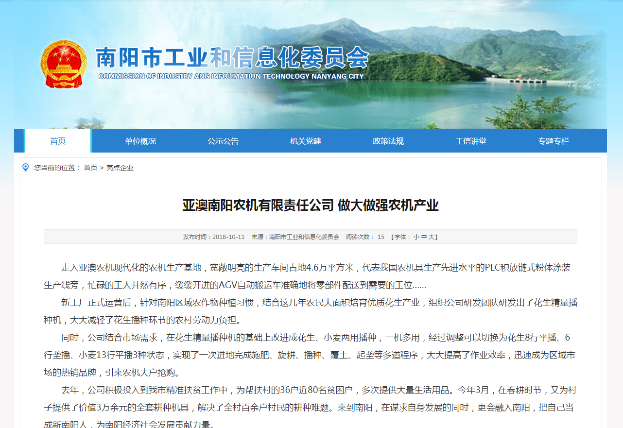 走入亞澳農(nóng)機現(xiàn)代化的農(nóng)機生產(chǎn)基地,寬敞明亮的生產(chǎn)車間占地4.6萬平方米,代表我國農(nóng)機具生產(chǎn)先進水平的PLC積放鏈?zhǔn)椒垠w涂裝生產(chǎn)線旁,忙碌的工人井然有序,緩緩開進的AGV自動搬運車準(zhǔn)確地將零部件配送到需要的工位……