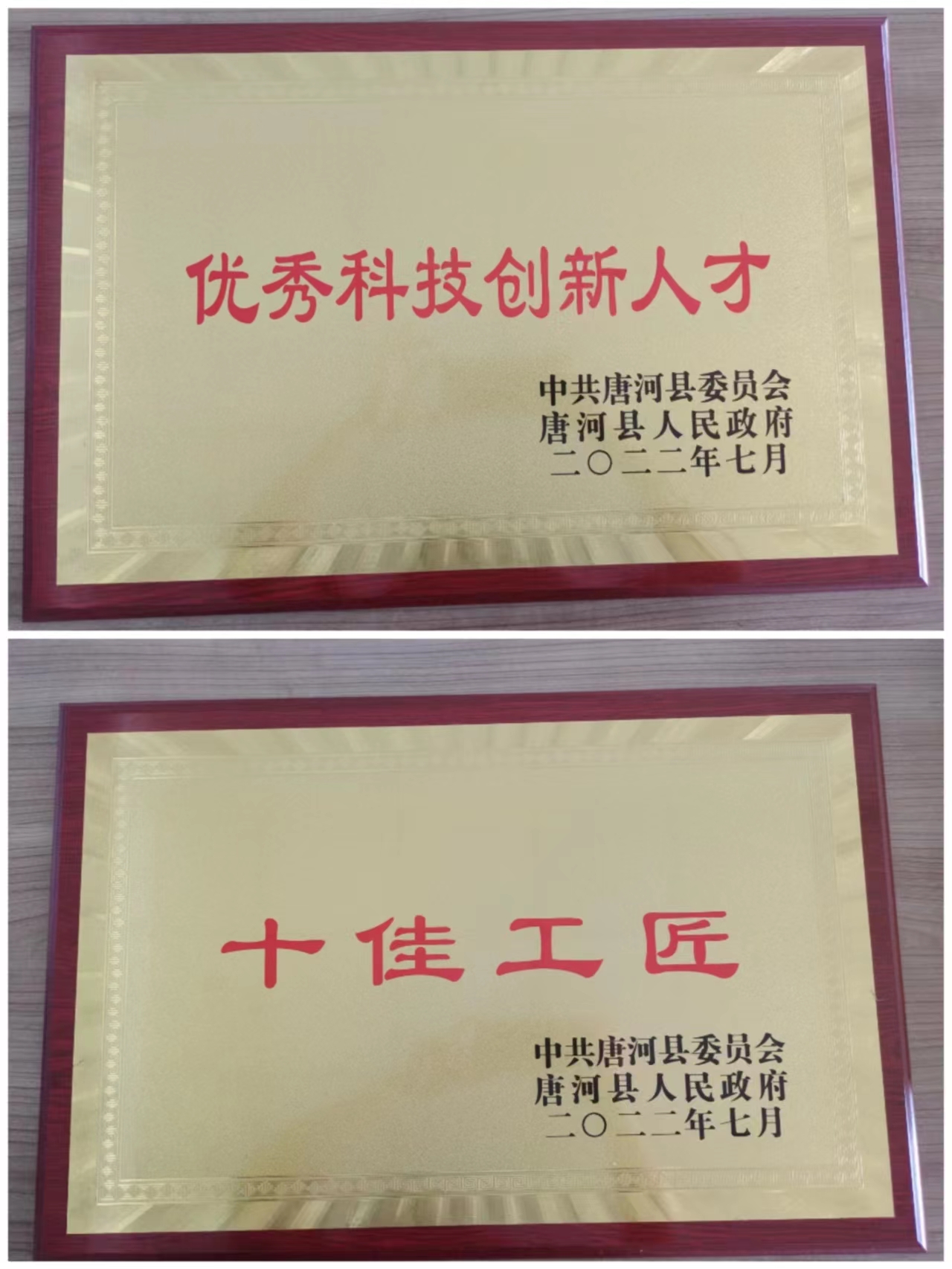 會上,我公司獲得 “十佳工匠”和“優秀科技創新人才”榮譽稱號。