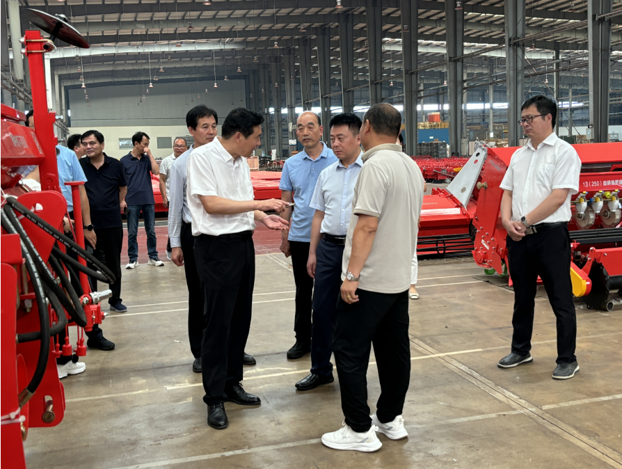 2024620,南陽市副市長劉江,市政府副秘書長唐榮濤,市農業農村局黨組書記局長周清玉、市農業機械技術中心主任李奇等領導在唐河縣副縣長方明陪同下蒞臨亞澳農機南陽公司考察,公司副總經理郭靖陪同調研。