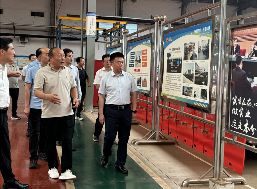 領導一行先后參觀了公司產品展廳、制造現場等區域,在公司副總經理郭靖介紹下,領導們對公司產品智能制造過程、生產管理模式、綠色工廠體系發展、技術研發等做了詳細了解。