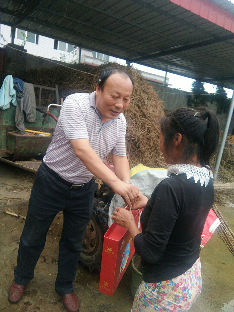 淫雨霏霏,在國慶、中秋雙節來臨之前,2017年9月25日下午,亞澳南陽農機有限公司總經理助理郭靖懷著滿滿的熱情與關懷,帶著月餅禮盒,再次來到大河屯鎮申沖村開展扶貧慰問工作。