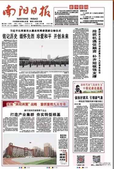 2017年 1214日,南陽日報頭版報道唐河產業發展,我公司榜上有名。以下為報道全文。