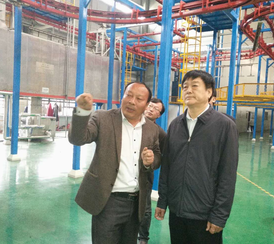 劉樹華部長還參觀了亞澳的粉體智能涂裝車間,在噴涂現場向郭總咨詢相關情況,并在下件區親自了解、觀察了相關噴涂配件成品后贊道:“無異味,亮澤度高,很漂亮”。